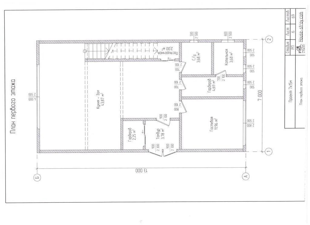 Дом 2-х этажный: 1 этаж большая гостиная-кухня, сан узел, гардеробная, котельная, гостевая спальня, постирочная; 2 этаж - 3 спальни, сан узел, большая терраса, 3 этаж- эксплуатируемая кровля с зоной отдыха.