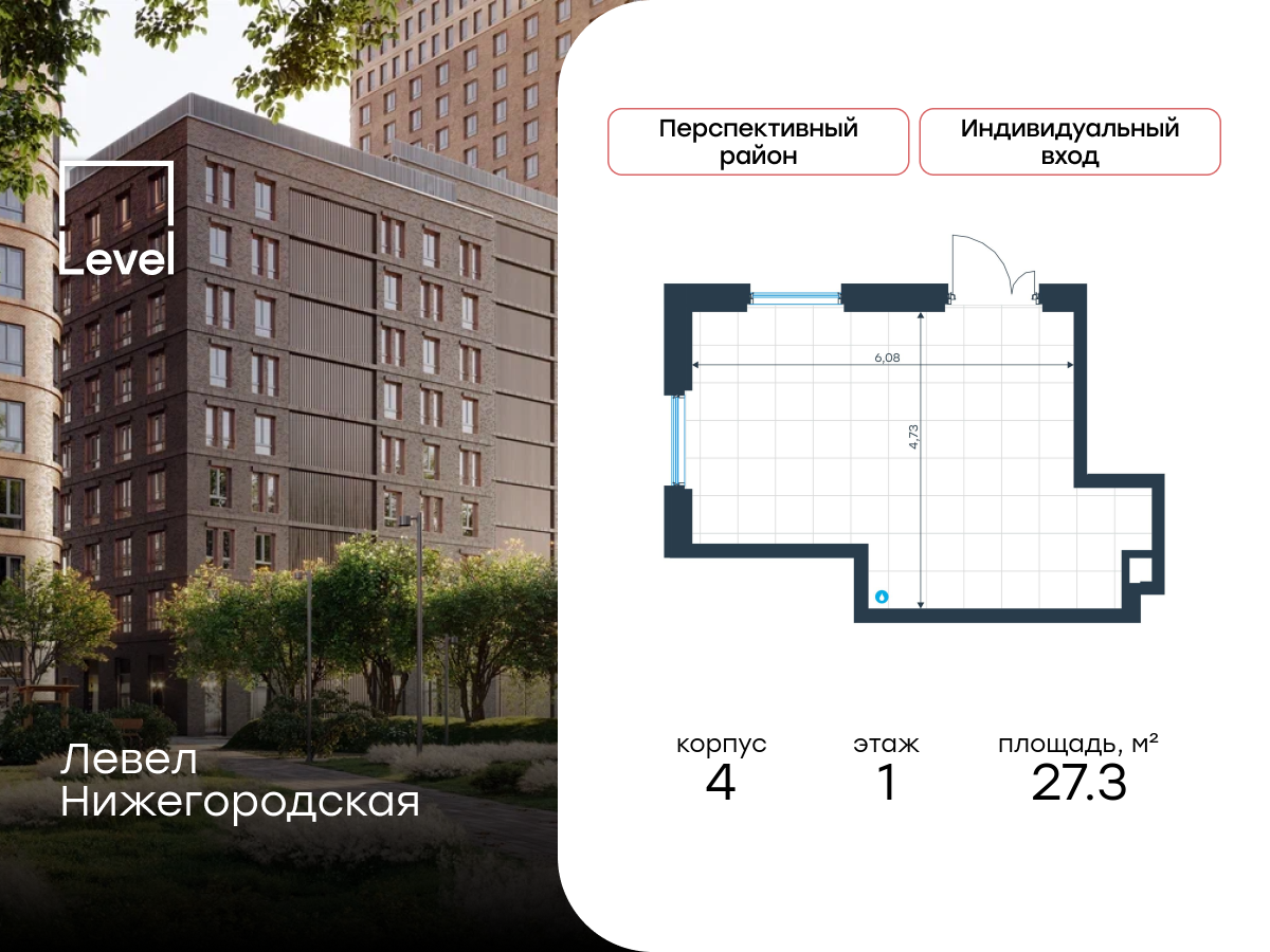 Купить ПСН 27 м² в ЖК Левел Нижегородская
