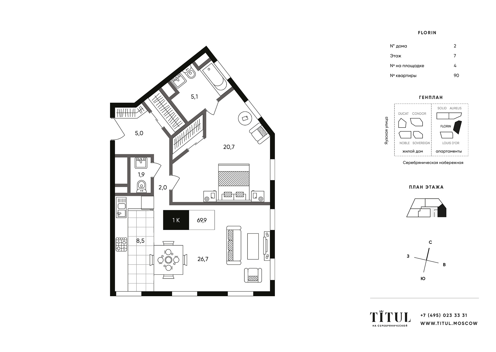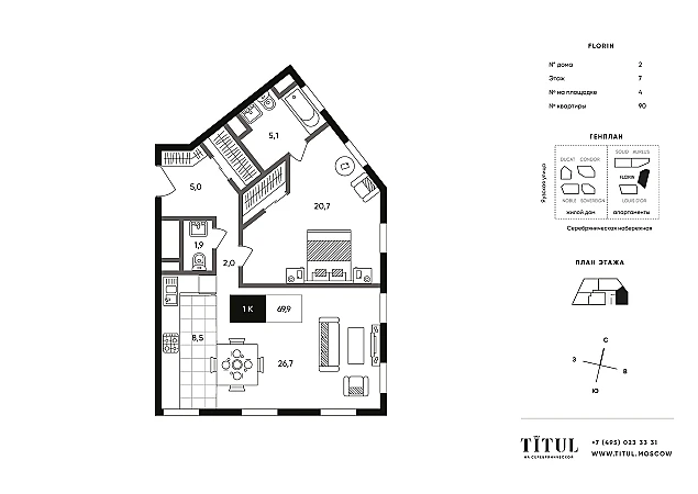 Купить 2к квартиру 69 м² в ЖК TITUL на Серебрянической (Титул)