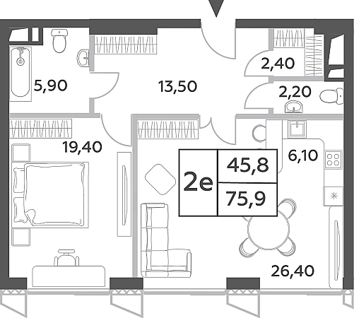 Купить 2к квартиру 75 м² в ЖК Will Towers