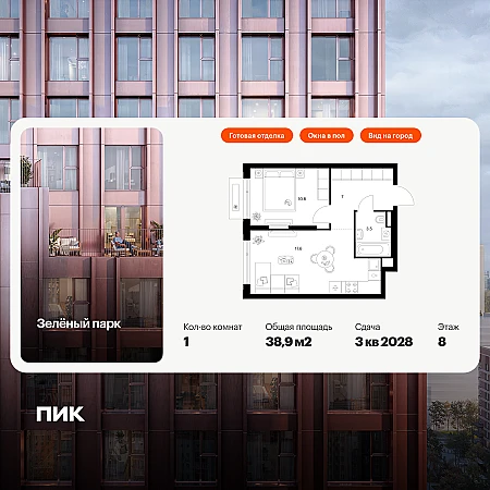 Квартира располагается на 8 этаже 14-этажного дома в ЖК Аникеевский.