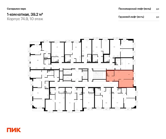 Продаётся 1-комн.квартира площадью 39.20 кв.м на 10 этаже 18 этажного дома (Корпус 74.9, секция 9) проекта ПИК Саларьево парк. Светлый просторный подъезд на уровне земли, функциональная планировка, большие окна, с отделкой.