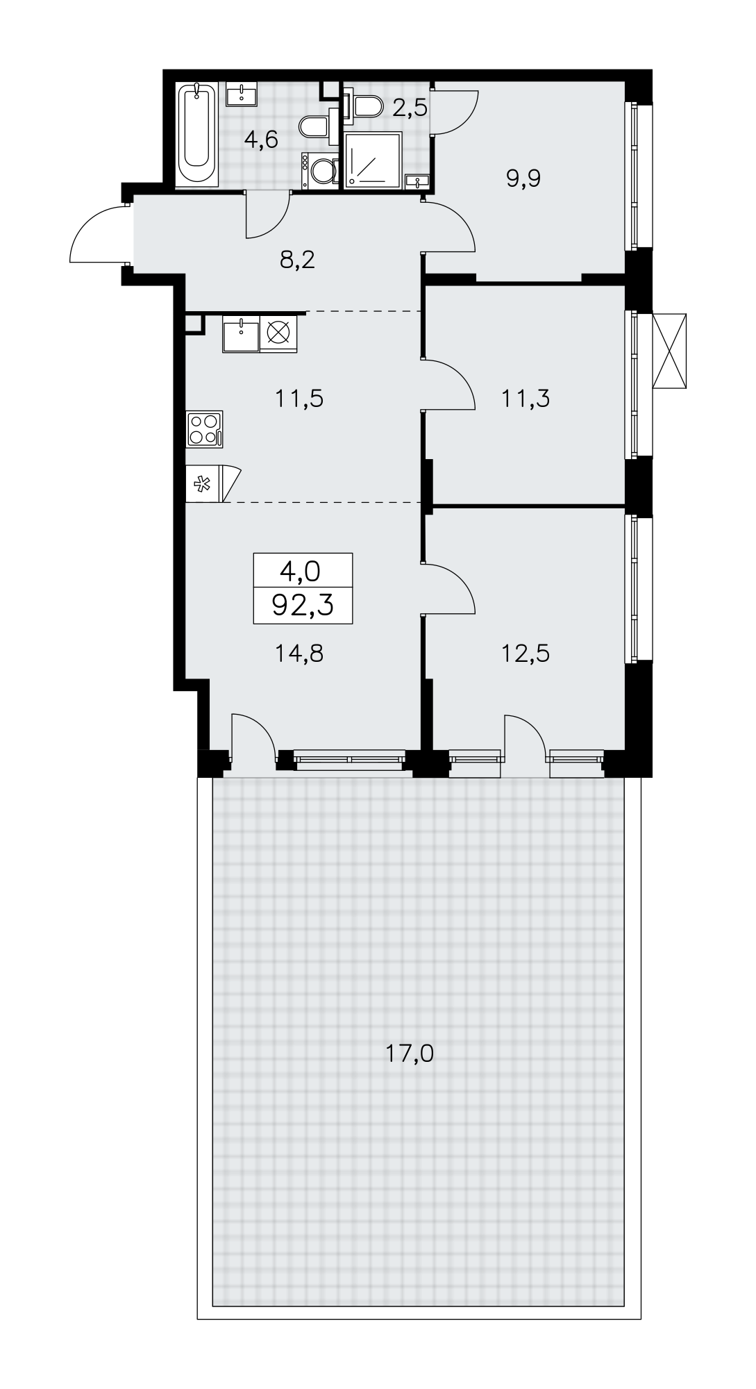 Купить 4к квартиру 85 м² в ЖК Гранель Коломенское