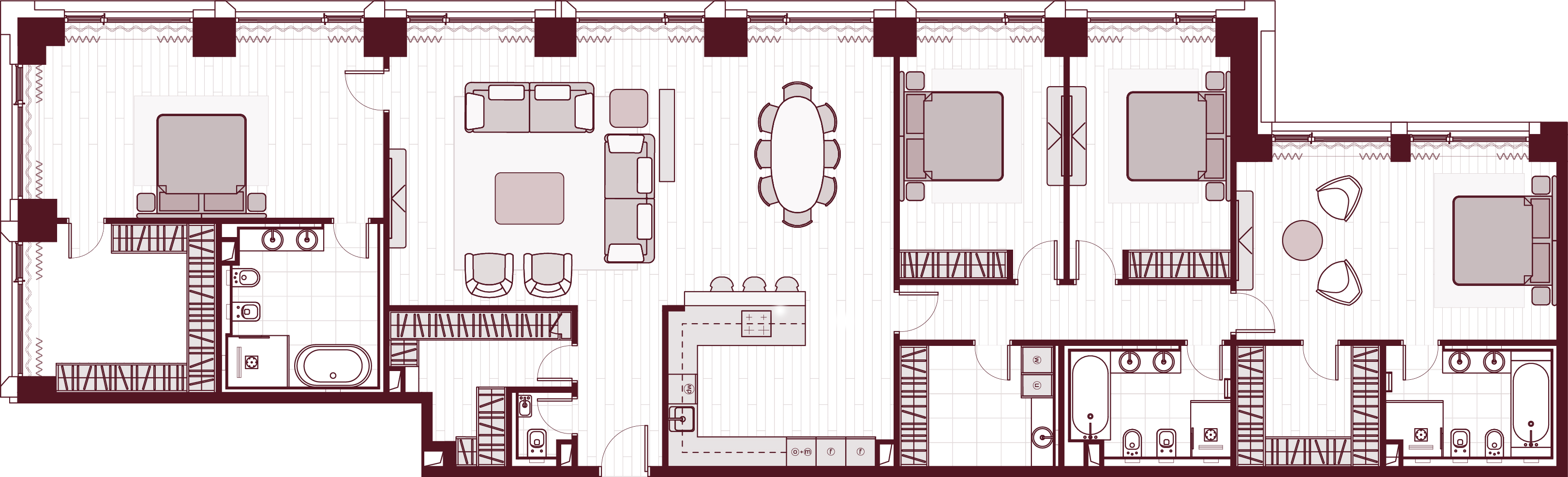 Эксклюзивный формат – двухэтажные пентхаусы с собственными открытыми террасами, увеличенной высотой потолков и отдельным входом с каждого этажа.