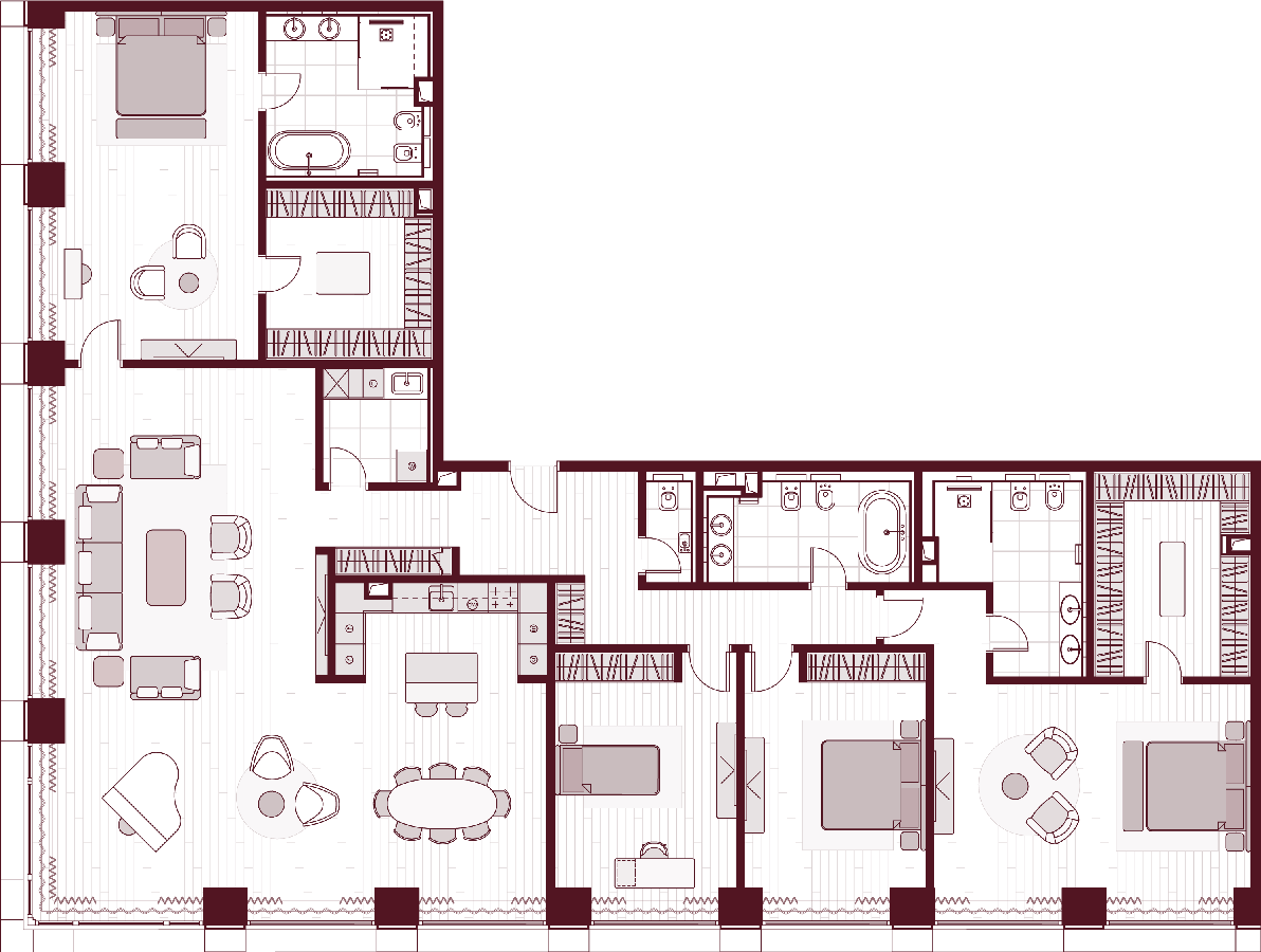 Собственная инфраструктура только для резидентов: клабхаус с каминной зоной и библиотекой, консьерж-сервис, роскошные интерьеры лобби от одного из самых востребованных архитектурных бюро мира - лондонского бюро Aedas.