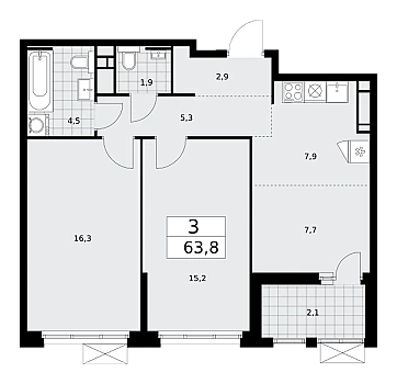Купить 2к квартиру 49 м² в ЖК Фестиваль Парк 2
