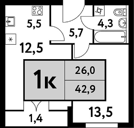 Купить 1к квартиру 42 м² в ЖК Фестиваль Парк 2
