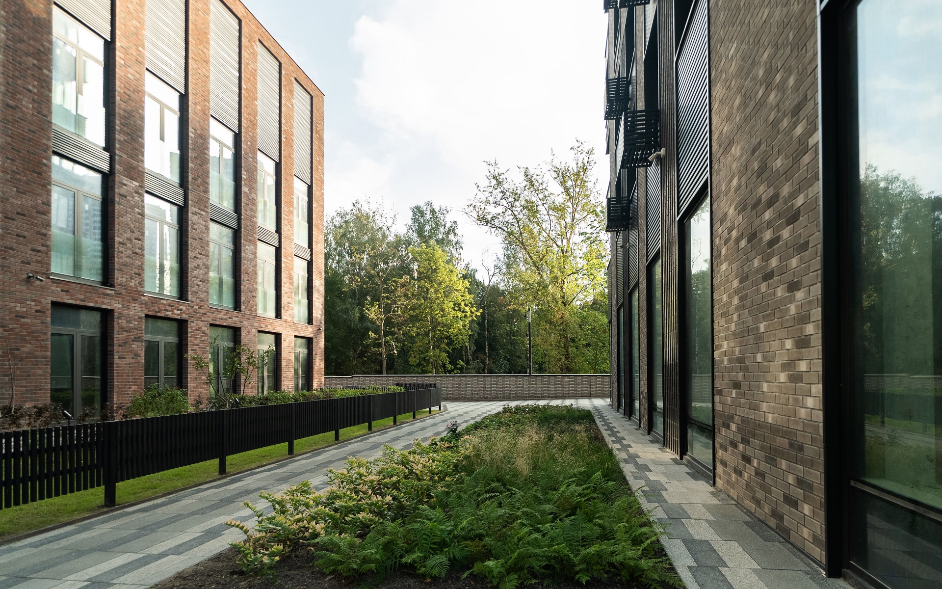 Закрытый благоустроенный двор без машин