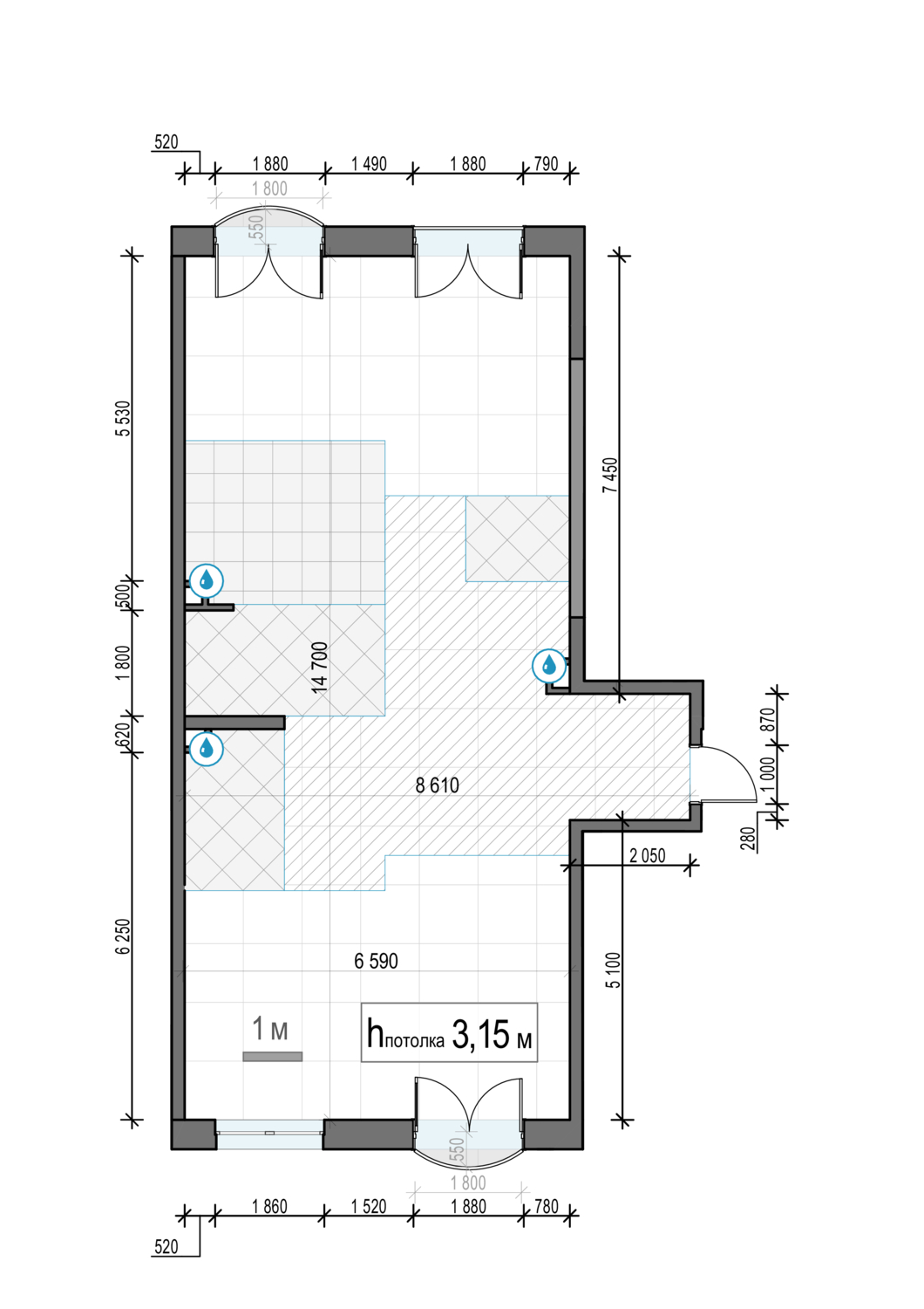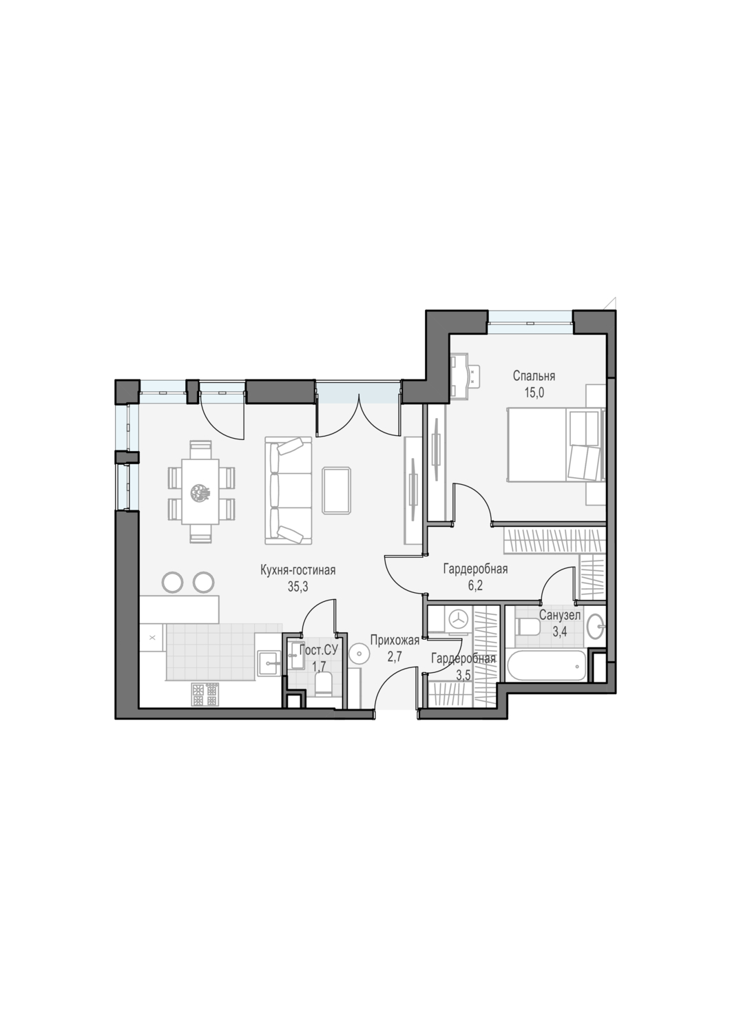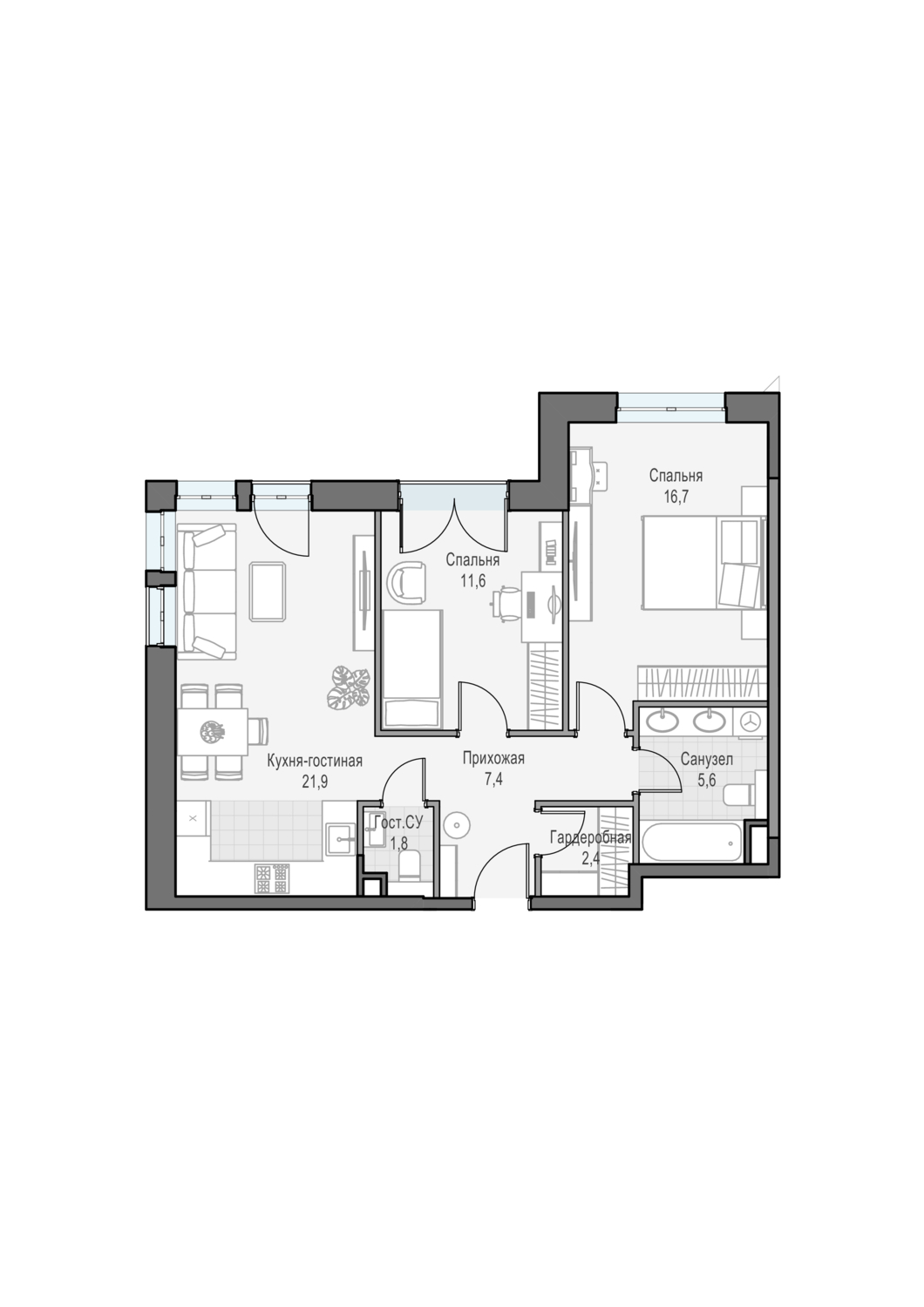 • Высокие потолки: в квартирах – 3.1 м, в пентхаусах – 3,7 м