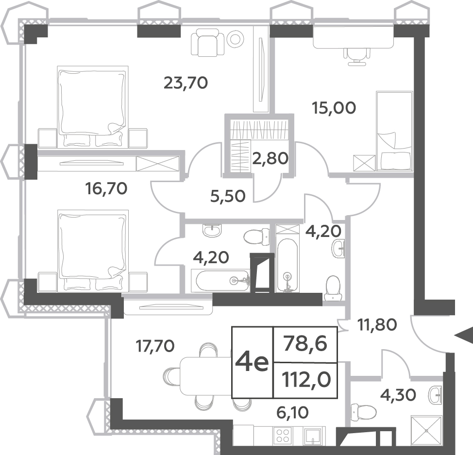 Купить 4к квартиру 112 м² в ЖК Will Towers