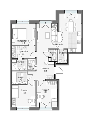 Купить 4к квартиру 112 м² в ЖК Will Towers