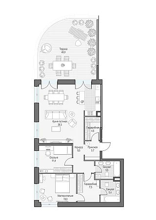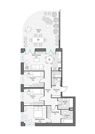 - Квартиры с террасами и пентхаусы