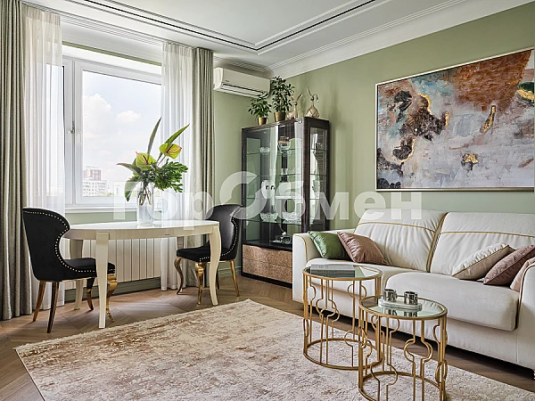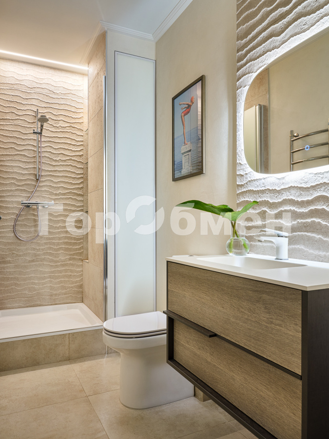В квартире выполнен качественный дизайнерский ремонт в 2024 г с великолепным цветовым решением и вниманием к деталям: на полу инженерная доска, много разных схем светового освещения, дорогие двери, декоративная штукатурка и краска на стенах, фреска в спальне, душевая кабина в кафеле современного образца, дополнительные места хранения.
