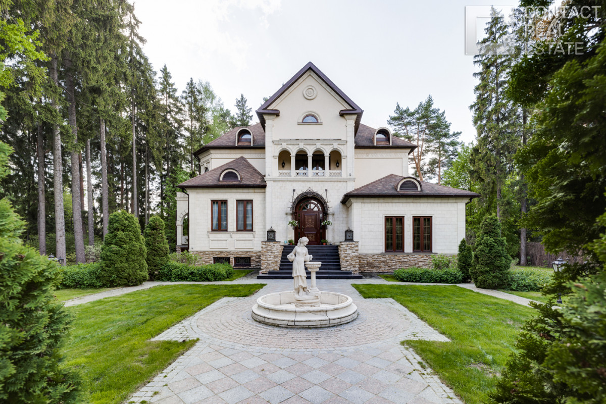 На территории 2,0 Га создан полноценный парковый ансамбль с искусственными озерами, прогулочными аллеями и взрослыми хвойными посадками. Аромат соснового бора и живописный ландшафт создают особую атмосферу. Также расположены отдельно стоящий гаражный комплекс на 4 м/м с блоком для персонала, гостевой дом и банный комплекс.