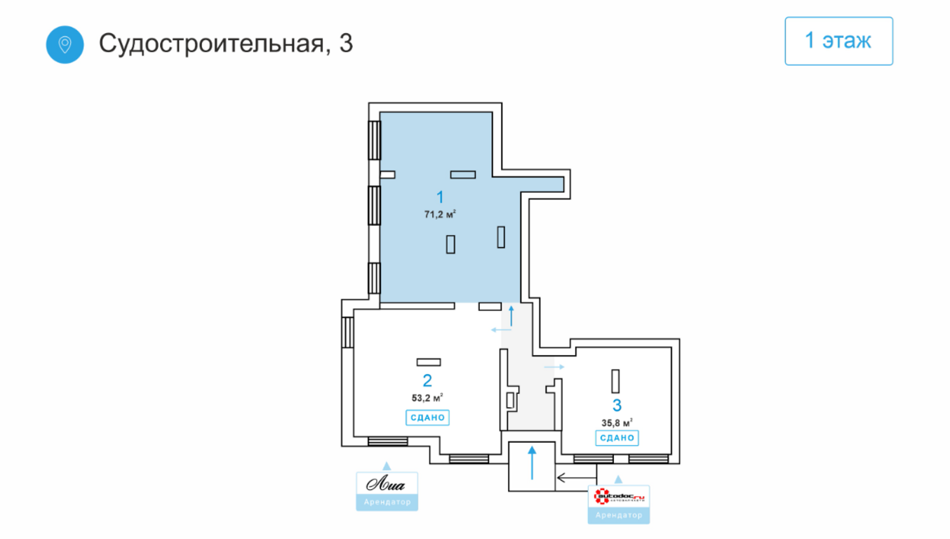 ==ЛОТ 221925 == ОТ СОБСТВЕННИКА, БЕЗ КОМИССИИ. Предлагается в аренду коммерческое помещение, расположенное по адресу: г. Москва, улица Судостроительная, Юго-Западный административный округ. Помещение находится в непосредственной близости от станции метро «Коломенская», что обеспечивает высокую пешеходную и транспортную доступность. Объект обладает значительным рекламным потенциалом, включая возможность размещения наружной рекламы на фасаде здания.