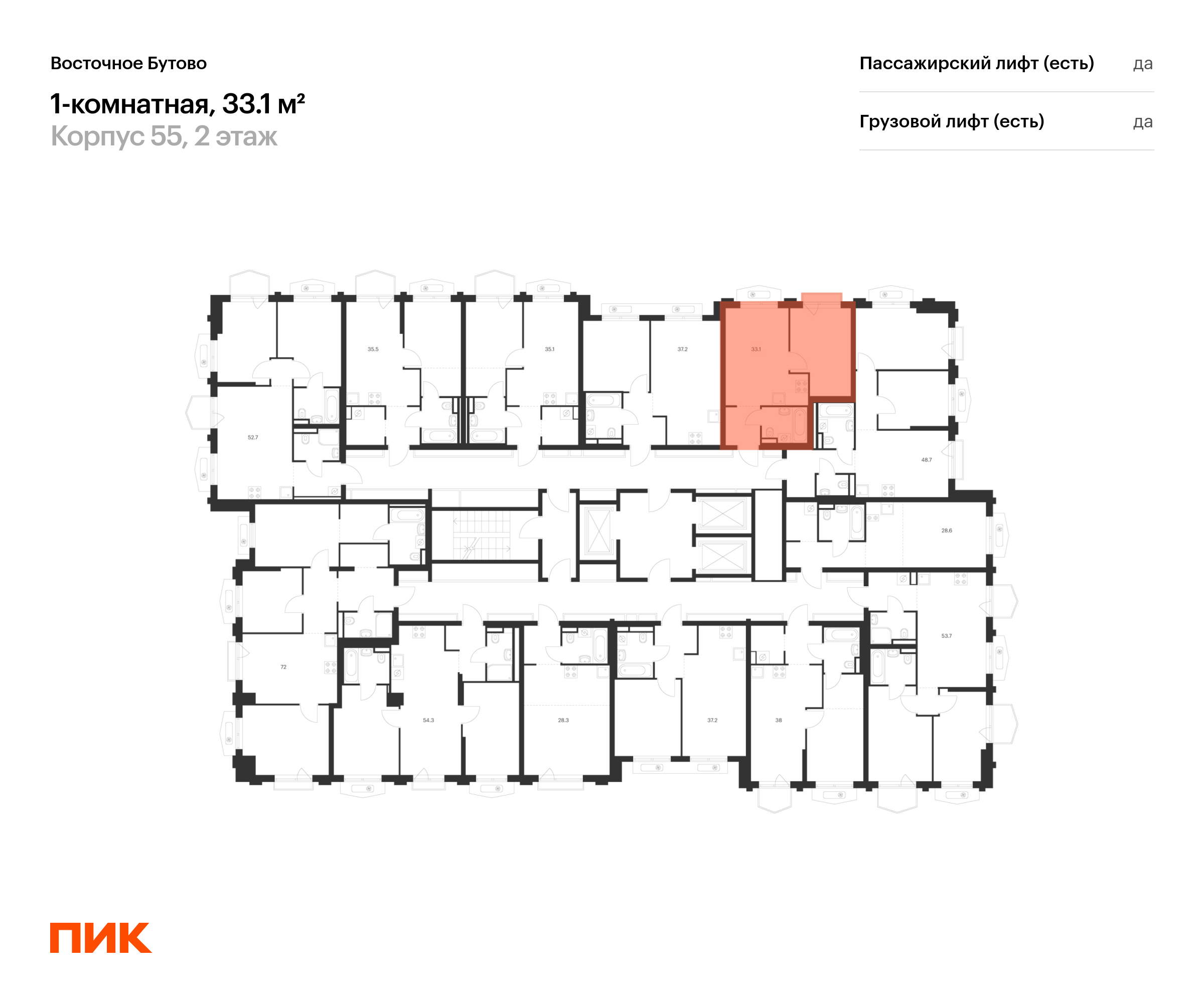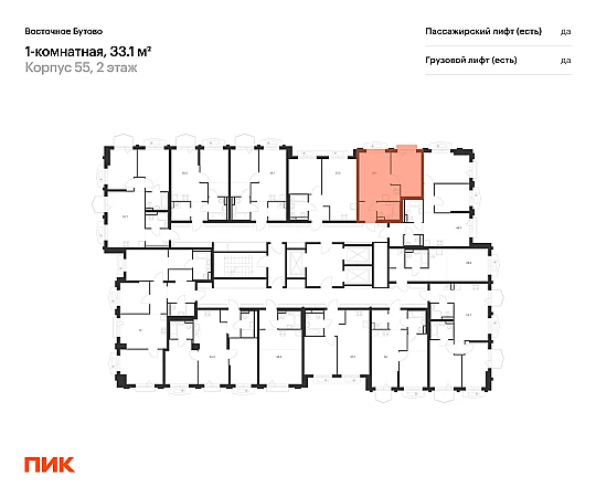 Продаётся 1-комн.квартира площадью 33.10 кв.м на 2 этаже 25 этажного дома (Корпус 55, секция 1) проекта ПИК Восточное Бутово. Светлый просторный подъезд на уровне земли, функциональная планировка, большие окна, с отделкой.