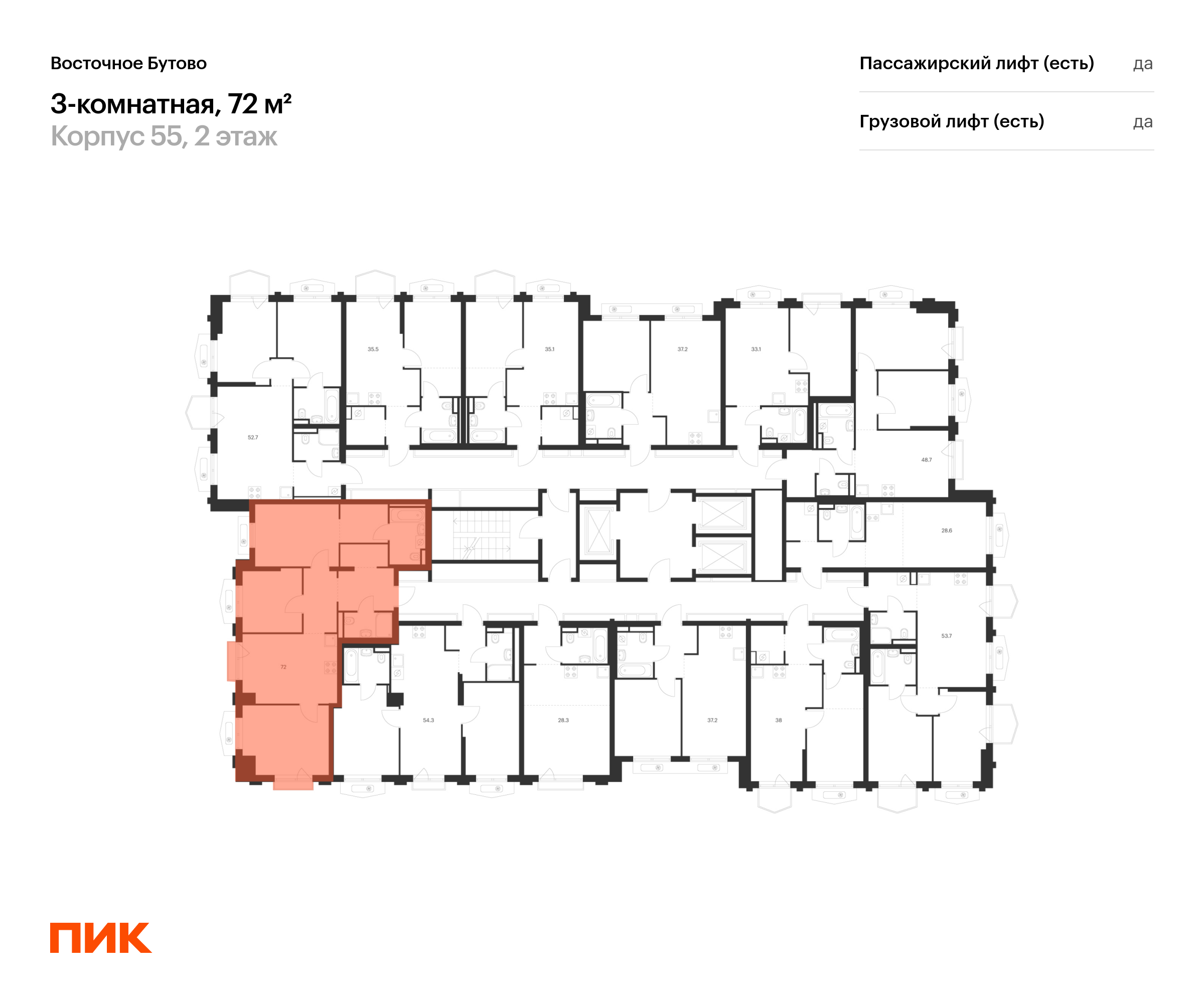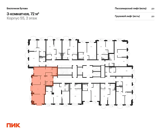 Продаётся 3-комн.квартира площадью 72.00 кв.м на 2 этаже 25 этажного дома (Корпус 55, секция 1) проекта ПИК Восточное Бутово. Светлый просторный подъезд на уровне земли, функциональная планировка, большие окна, с отделкой.