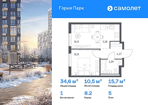 Замечательная однокомнатная квартира с окнами на восход, рядом с домом прекрасный парк. Один собственник. AFY-345515790