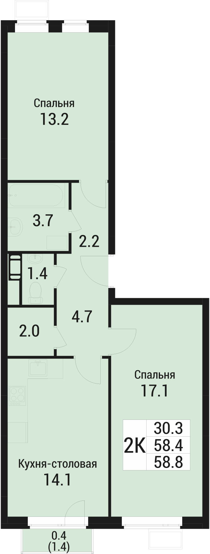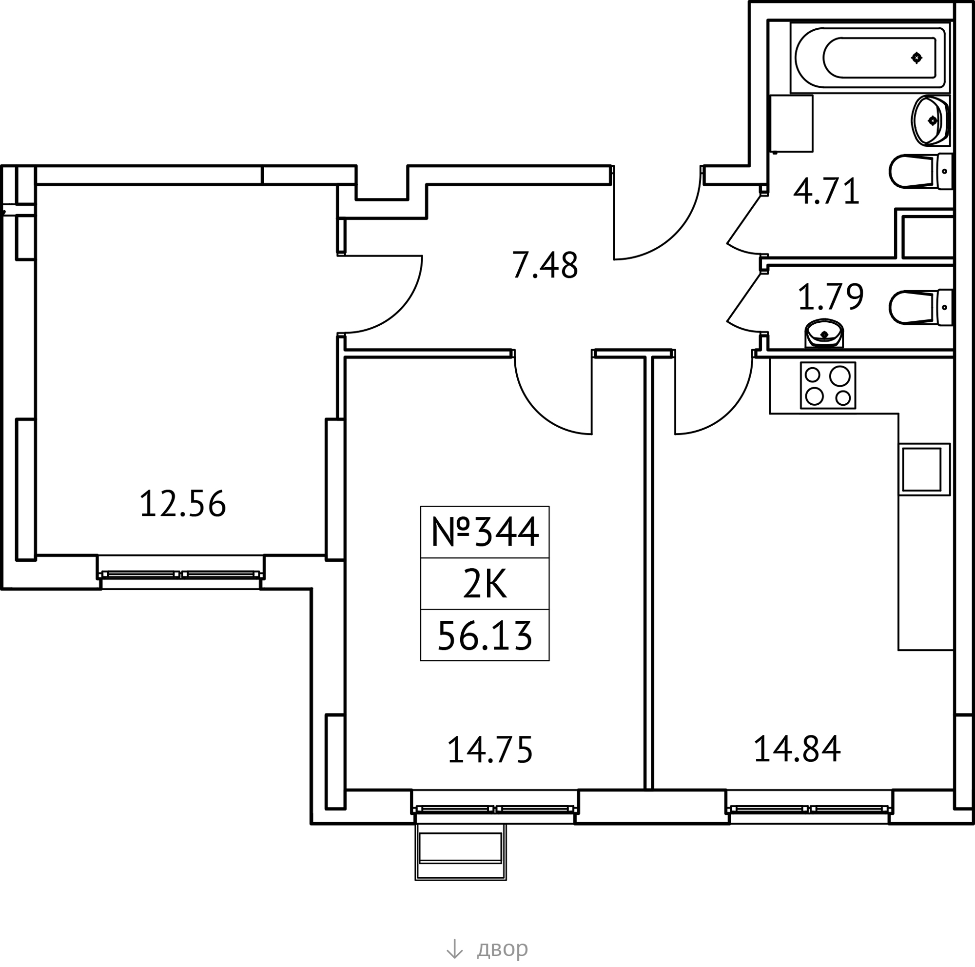 Купить 2к квартиру 53 м² в квартале Резиденции Архитекторов