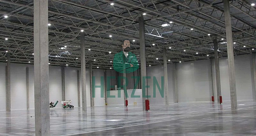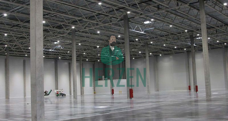 Ровный бетонный пол с антипылевым покрытием. Допустимая нагрузка на пол 7 т/м2