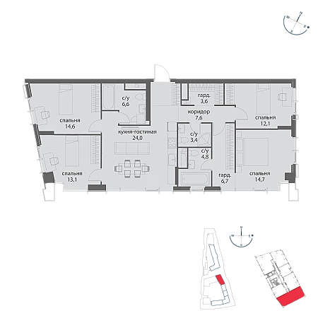 Купить 4к квартиру 154 м² в апарт-комплексе LES (Лес)