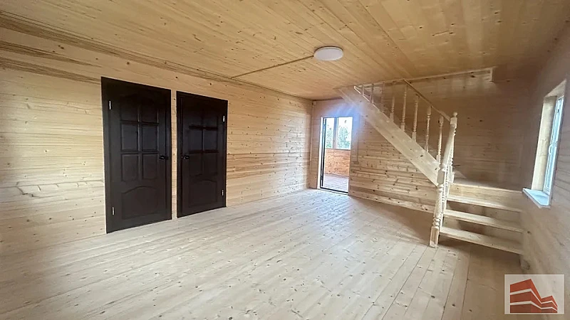Дом зимний, площадью 100 кв. м , фундамент свайный, каркасный, утеплен со всех сторон– подходит для круглогодичного проживания. Готов к проживанию, удобная лестница, полноценный второй этаж.