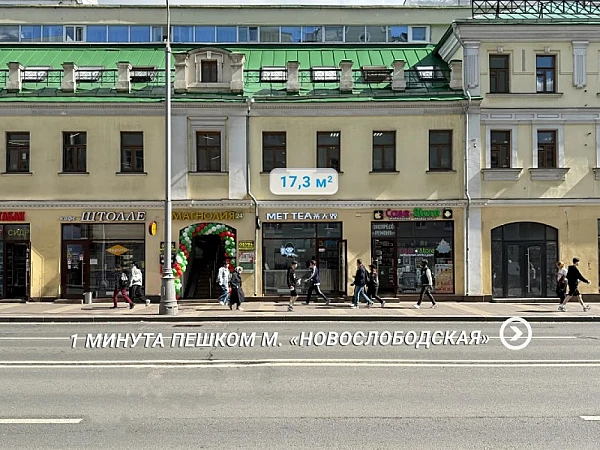 Предлагается на продажу торговое помещение с арендатором на 1 этаже офисного здания на Новослободской улице д. 20. Станция метро "Менделеевская" - менее 1 минуты пешком. 1-я линия домов. Сверхинтенсивные пешеходный и автомобильный трафики. Рядом наземный пешеходный переход. Высокий рекламный потенциал и места для размещения вывесок.