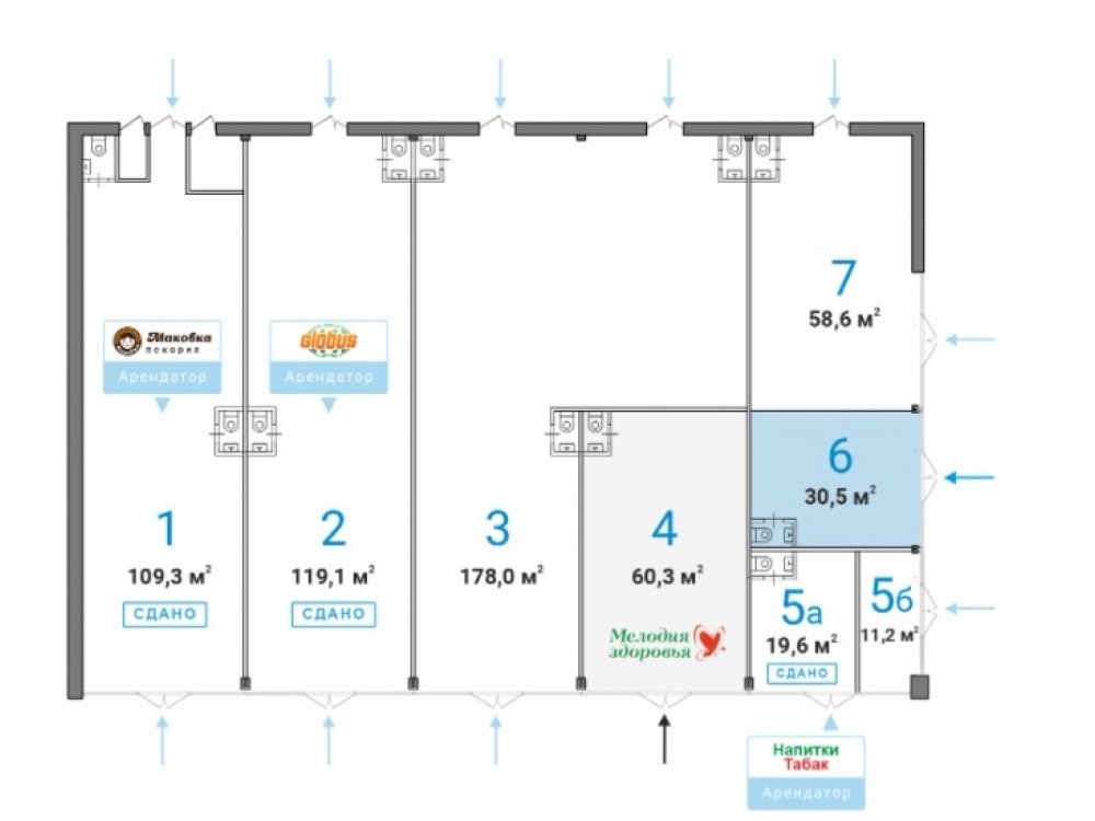 . Отдельные входные группы с фасада, есть дополнительные входы со двора.