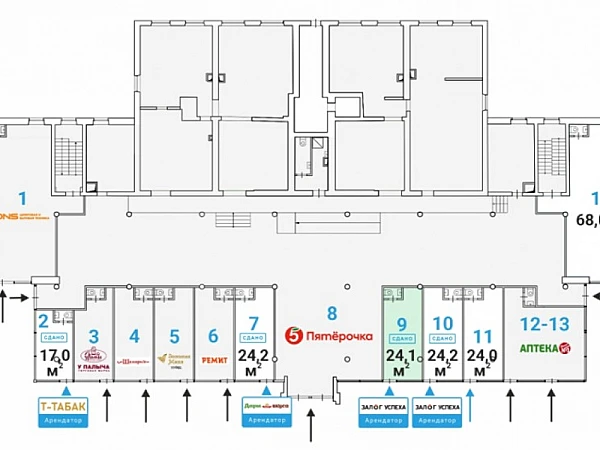 Продажа Street Retail помещения торгового назначения площадью на 1 этаже здания (встроенно-пристроенный к жилому дому). Планировка — открытая, перекрытия — ж/б, высота потолков 1-го этажа — до 3,5 м.