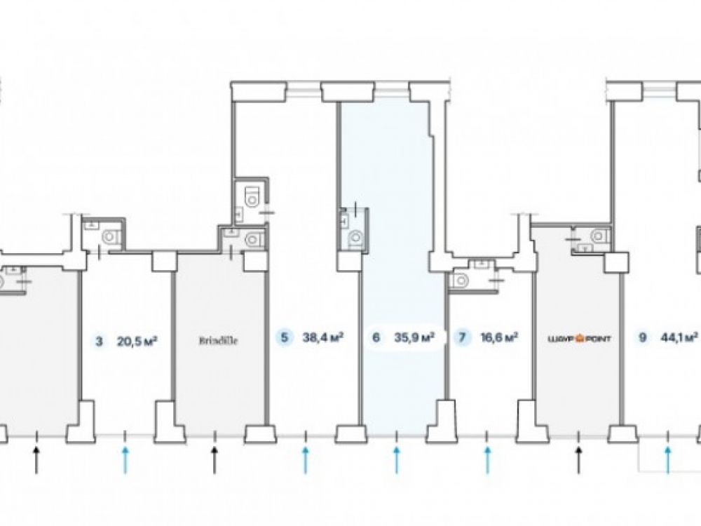 . Отдельная входная группа с фасада в каждый блок с 1-й линии.