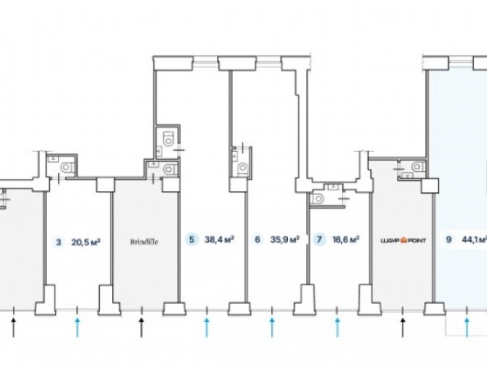 . Отдельная входная группа с фасада в каждый блок с 1-й линии.