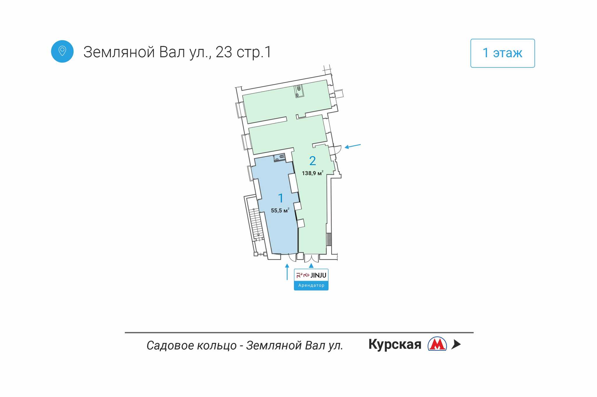Предлагается в аренду помещение на улице Земляной Вал, ЦАО, г. Москва. Шаговая доступность от ст. метро "Курская" - 1 минута пешком. Отличная пешеходная и транспортная доступность. Высокий рекламный потенциал и возможность размещения вывесок. Крупный деловой район с большим жилым массивом. В непосредственной близости расположены бизнес-центры, торгово-развлекательный центр "Атриум", бизнес-квартал "Арма", а также элитный жилой комплекс "Дом Chkalov".