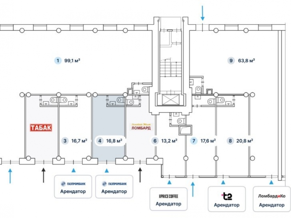 . Арендатор: Газпромбанк. Арендная плата 296 800 рублей в месяц, коммунальные платежи и электричество оплачиваются арендатором отдельно. Схема сделки: договор купли-продажи недвижимости (ДКПН).