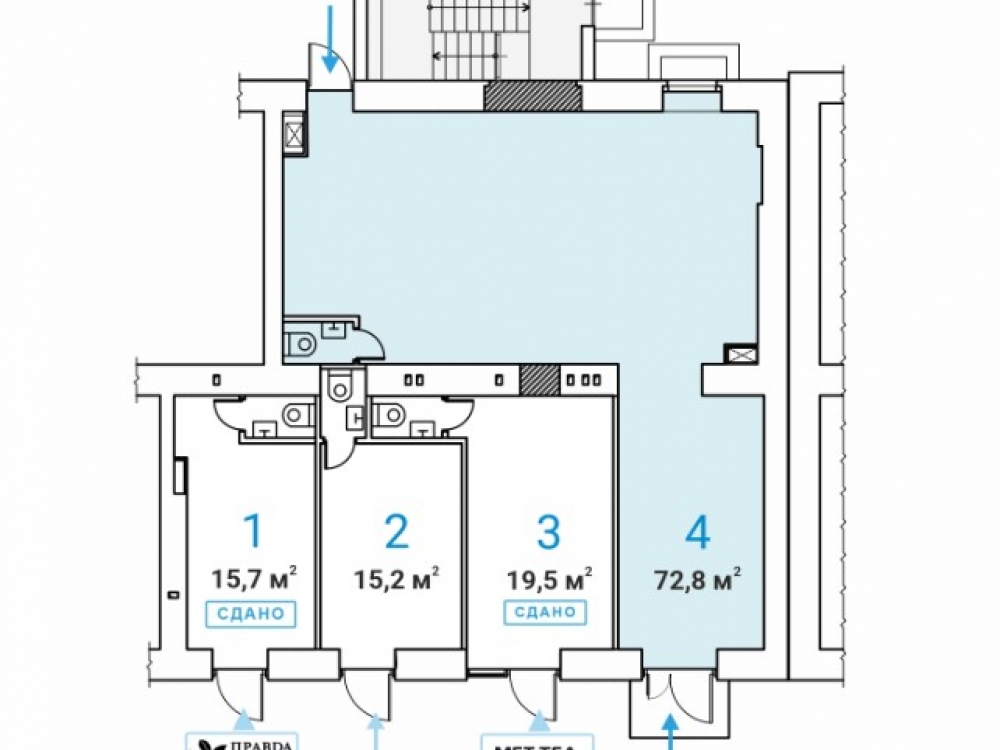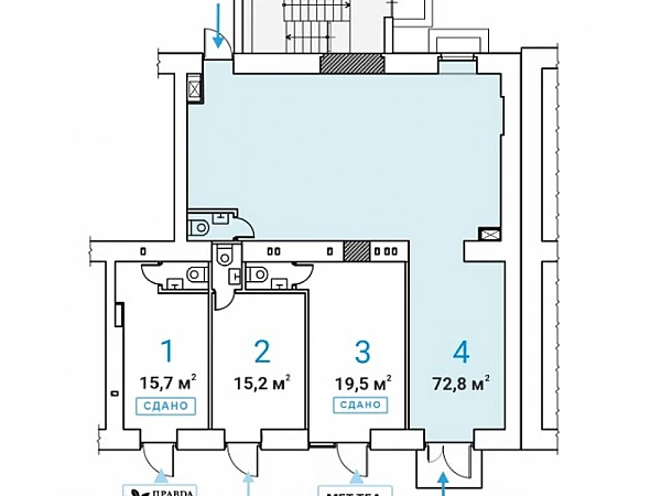 Аренда Street Retail помещения торгового или свободного назначения (ПСН) площадью 72,8 кв.м на 1 этаже жилого здания. Планировка — открытая (свободная), перекрытия — ж/б, высота потолков — 3,5 м. Отлично подойдёт под любой вид деятельности: торговое помещение, магазин, ресторан, кафе, аптека, салон красоты, банк, офис продаж, кофейня и др.