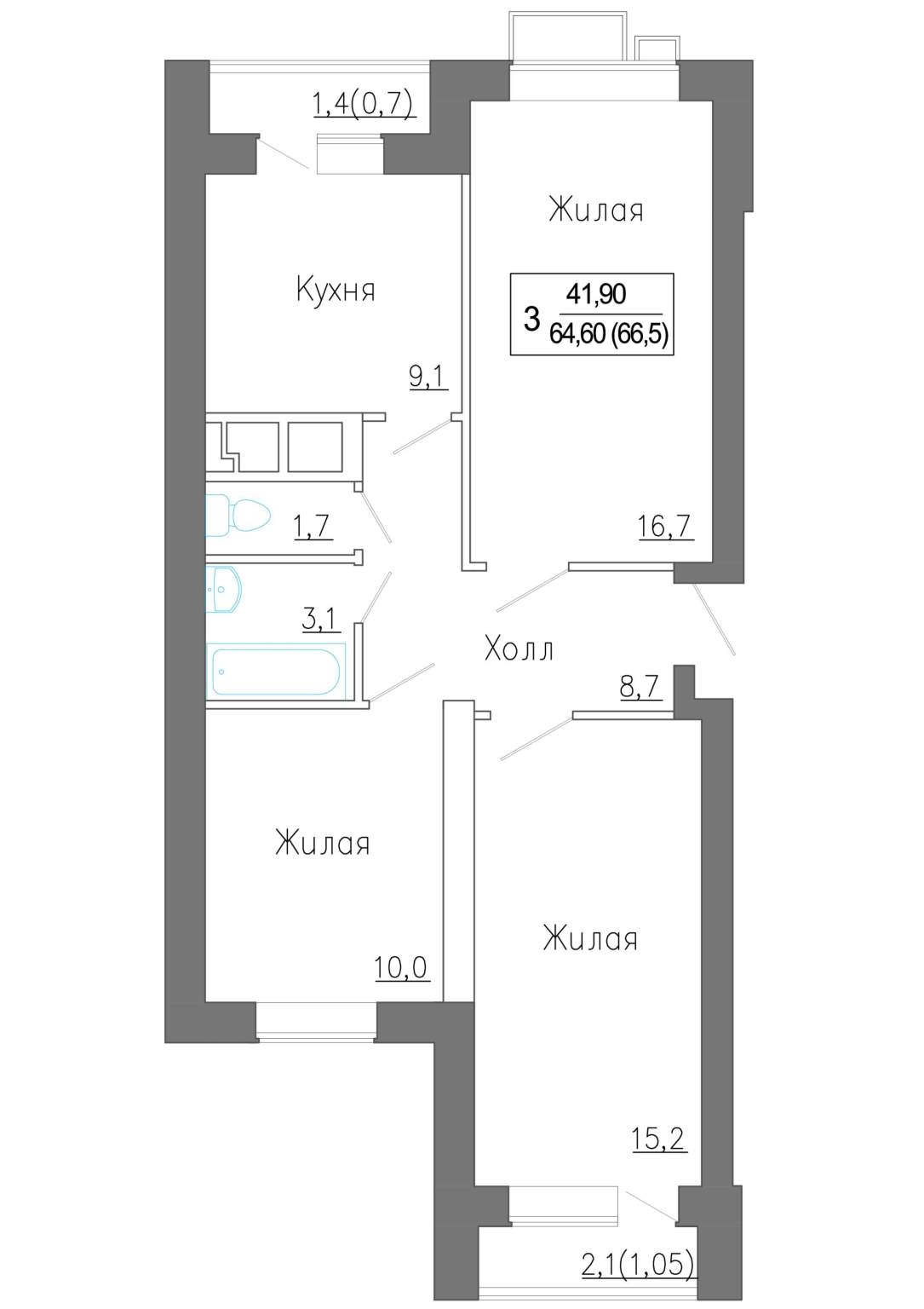 Купить 3к квартиру 66 м² в ЖК Новое Замитино