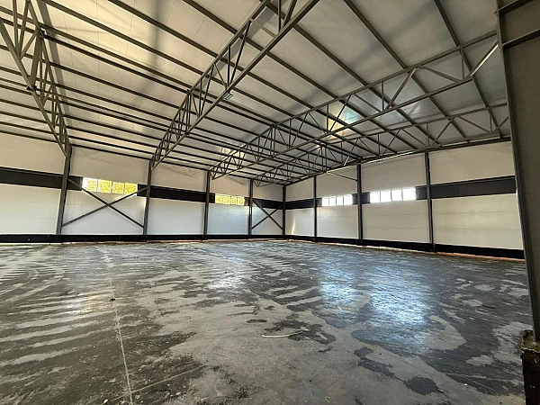 - 1-й этаж. Складское здание (утепленный ангар) 2200 м2.Габариты 92х24 метров.