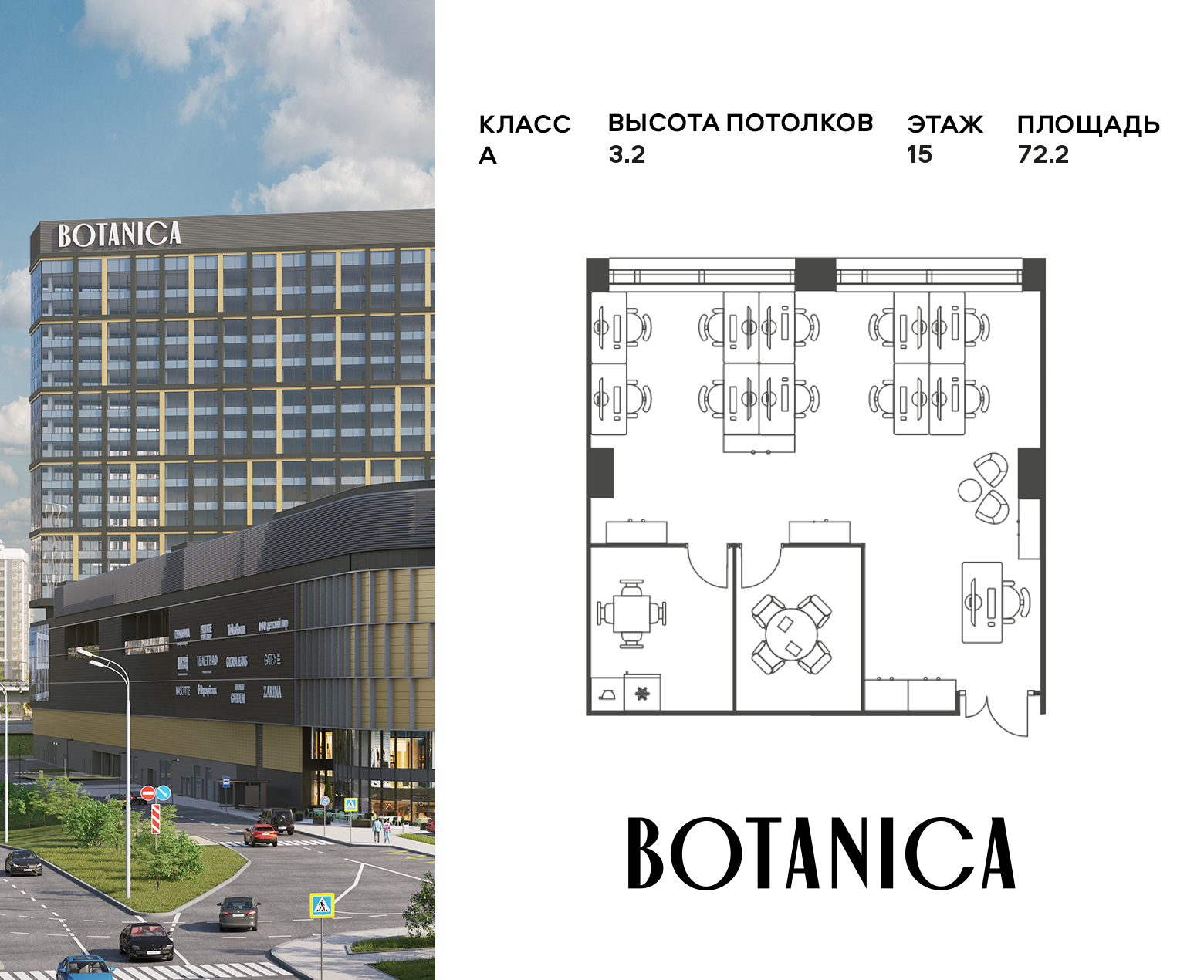 Офисное помещение площадью 72.29 кв.м в новом бизнес-центре BOTANICA от застройщика PIONEER.