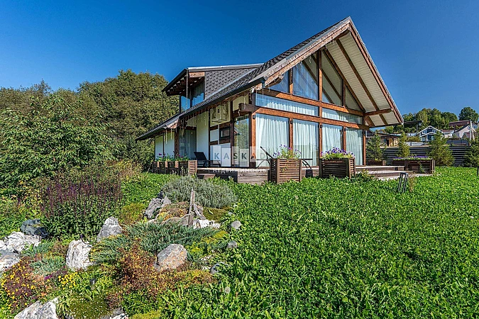 Построенный в 2022 году, дом возведен по технологии фахверк с использованием исключительно высококачественных и энергоэффективных материалов. Архитектура дома выполнена в современном стиле с большими панорамными окнами, которые гармонично вписываются в естественный природный ландшафт, подчеркнутый деревянными элементами. Внутреннее пространство дома отличает дорогая дизайнерская отделка, мебель и бытовая техника от лучших мировых производителей.