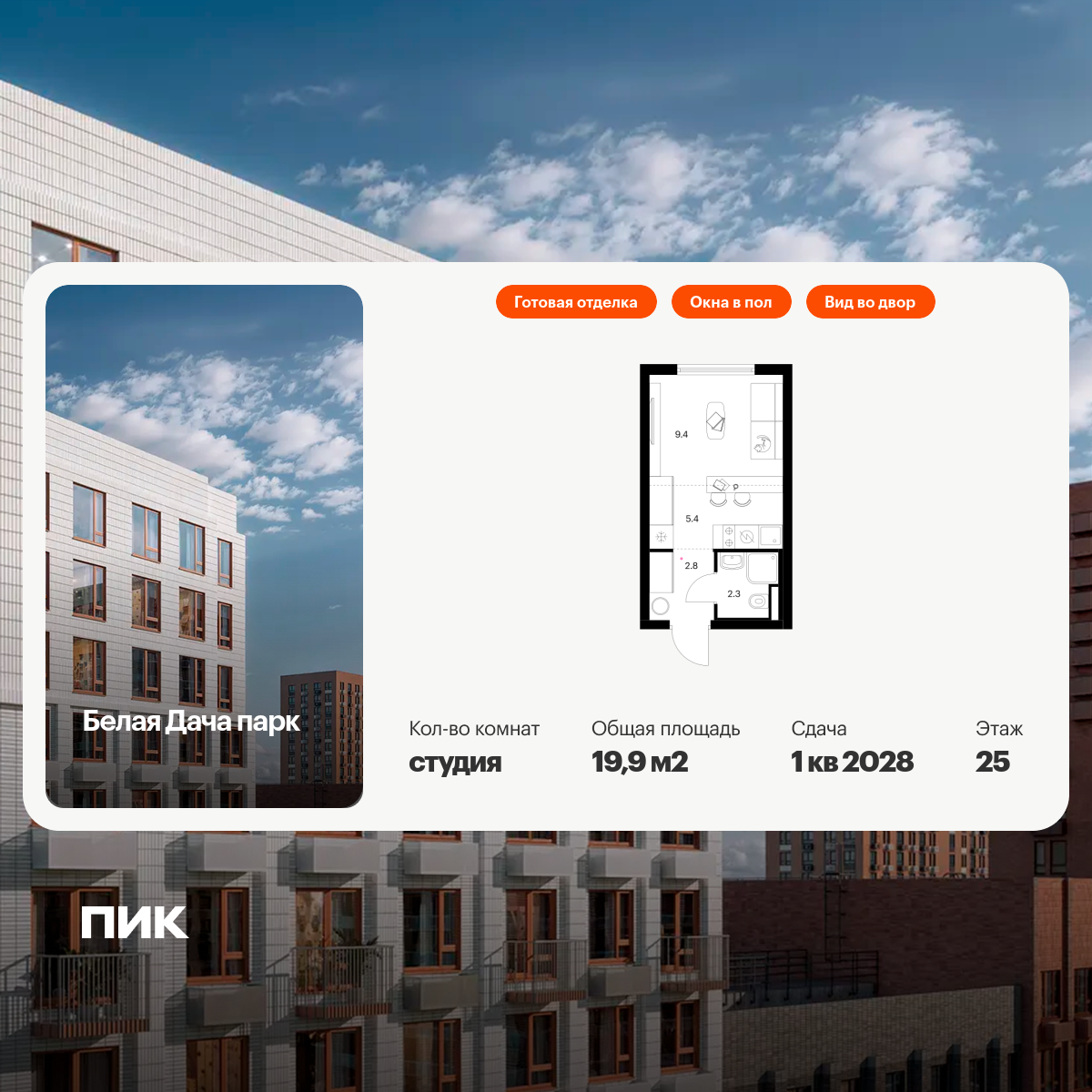 Купить квартиру студию 19 м² в ЖК Белая Дача парк
