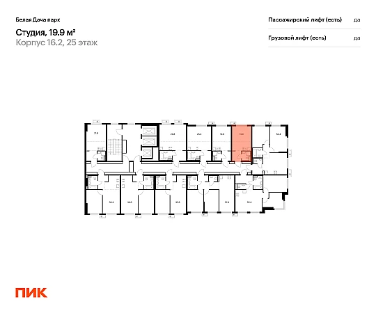 Продаётся квартира-студия площадью 19.90 кв.м на 25 этаже 25 этажного дома (Корпус 16.2, секция 5) проекта ПИК Белая Дача парк. Светлый просторный подъезд на уровне земли, функциональная планировка, большие окна, с отделкой.