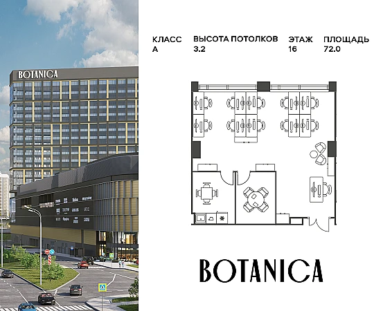 Офисное помещение площадью 289.17 кв.м в новом бизнес-центре BOTANICA от застройщика PIONEER.