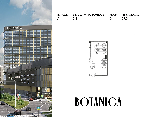 Офисное помещение площадью 33.48 кв.м в новом бизнес-центре BOTANICA от застройщика PIONEER.
