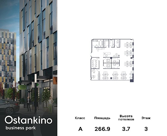 Офисное помещение площадью 266.9 кв.м в OSTANKINO BUSINESS PARK от надежного застройщика PIONEER.