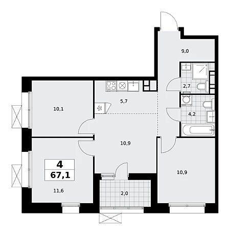 Купить 3к квартиру 75 м² в ЖК Матвеевский парк