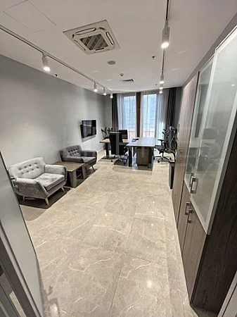 Пространство оформлено в европейском стиле с использованием качественных отделочных материалов и модной эргономичной мебели. Офис расположен рядом с основным ресепшн на 10 этаже, имеет панорамные окна с видом на Государственную Думу и Большой театр, а также выход на балкон. Оборудован индивидуальной системой кондиционирования и комфортным для зрения освещением.Расположение:
