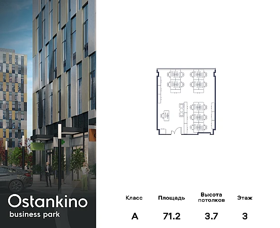 Офисное помещение площадью 71.2 кв.м в OSTANKINO BUSINESS PARK от надежного застройщика PIONEER.