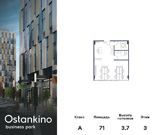 Снять офис 71 м² в бизнес-парке Ostankino Business Park