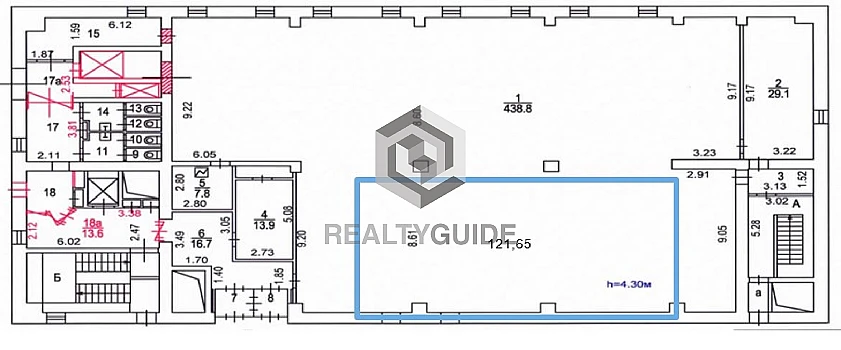 Высокие потолки 5,4 м, электрическая мощность (по запросу), мокрая точка.