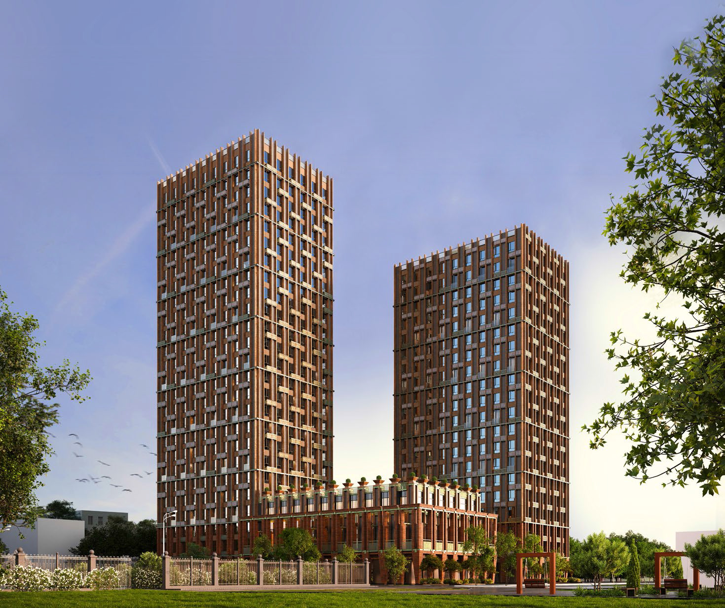 Бизнес-центр состоит из 2х офисных башен 20 и 27 этажей (более 4 500 чел. сотрудников), соединенных между собой стилобатом, внутри которого распологается торговая галерея, зона ресторанов и кафе, фитнес центр.