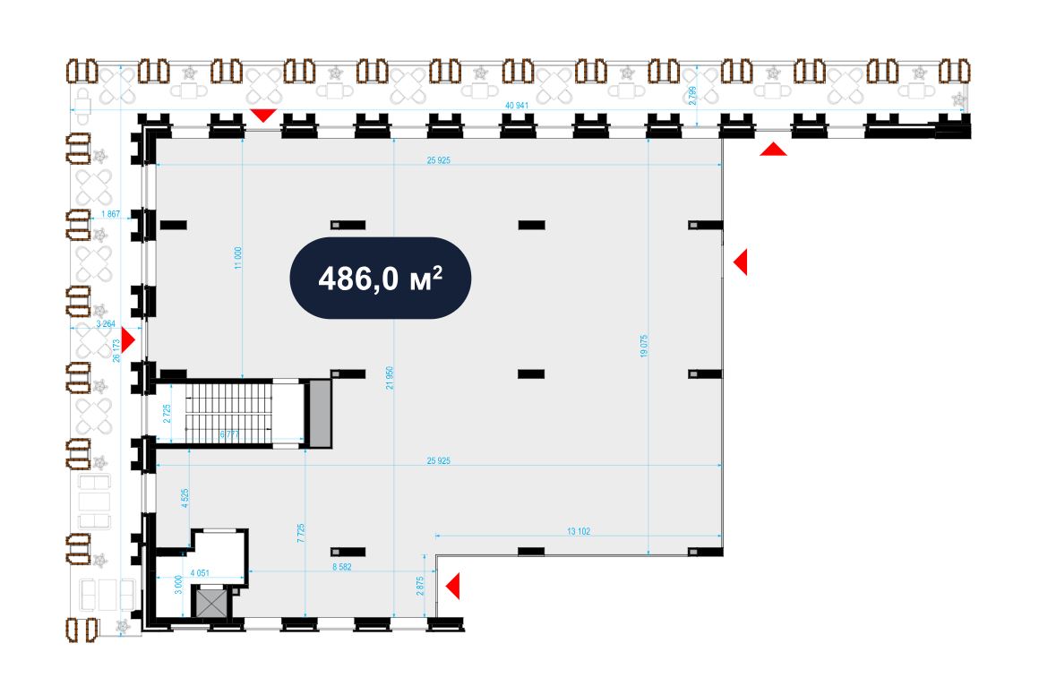 Торговое помещение в аренду для размещения предприятия общественного питания, площадью 486 кв.м от Застройщика на 2 этаже нового Бизнес Центра класса В+ Nevsky Plaza, по адресу: г.Москва, ул. Выборгская вл.18. Ввод в эксплуатацию - IV кв. 2026г.